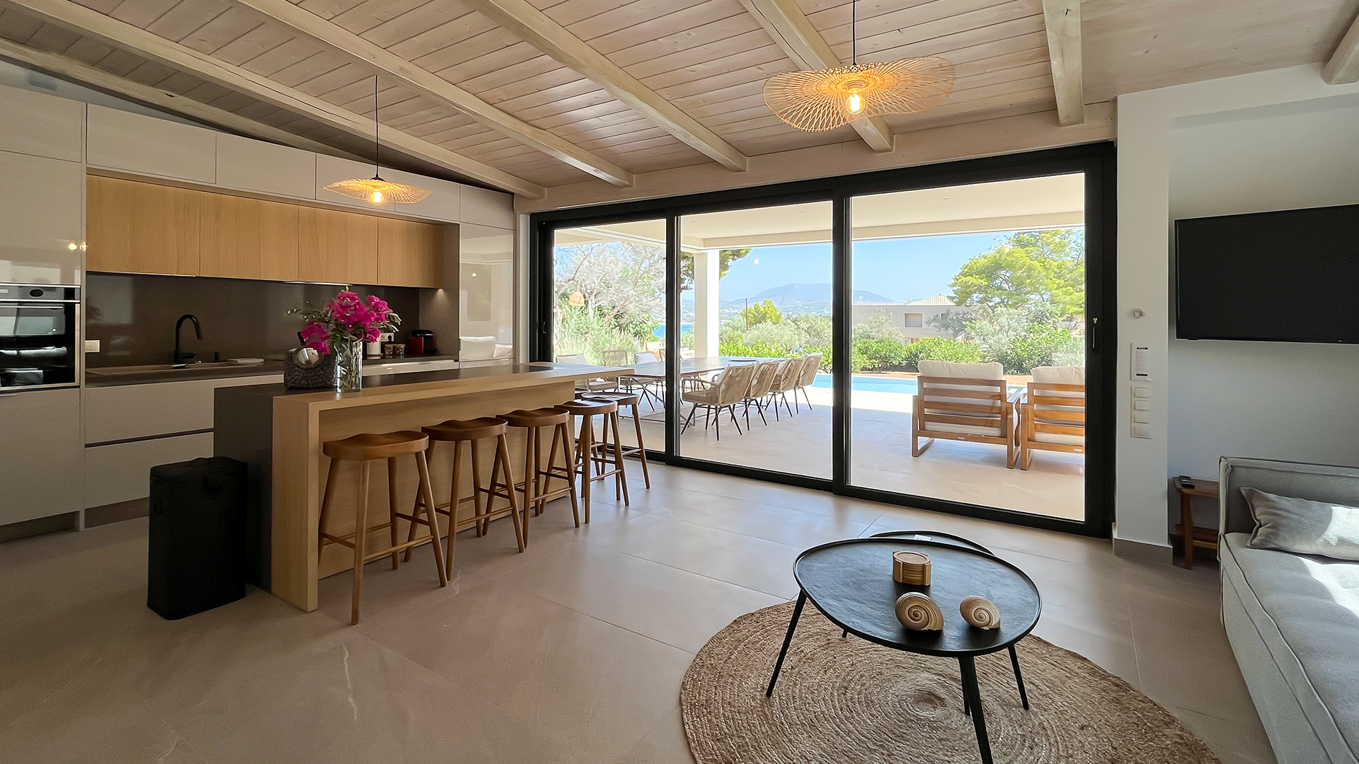 For those who seek adventure or simply want to explore the local treasures, the renowned Kounoupi Beach, with its crystal-clear turquoise waters, is just a stone’s throw away. You can spend your days basking in the sun, swimming, or trying out water sports. Additionally, the villa’s strategic location places it within a convenient 5-kilometer distance from the vibrant center of Porto Heli, where you can enjoy fine dining, shopping, and cultural experiences.
